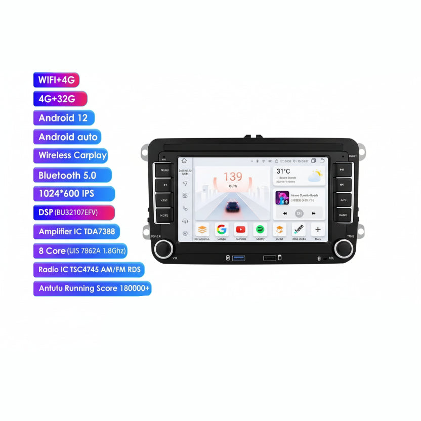 Cet ecran central tiguan intègre le WiFi, la 4G, le Bluetooth 5.0 et une radio FM RDS pour une connectivité complète en toutes circonstances.